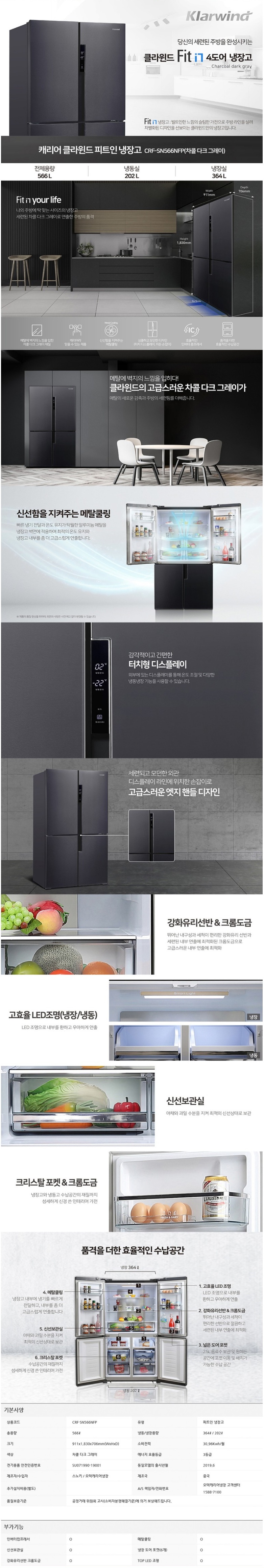 [효성] 캐리어 클라윈드 피트인 4도어 냉장고/566L/CRF-SN566NFP
