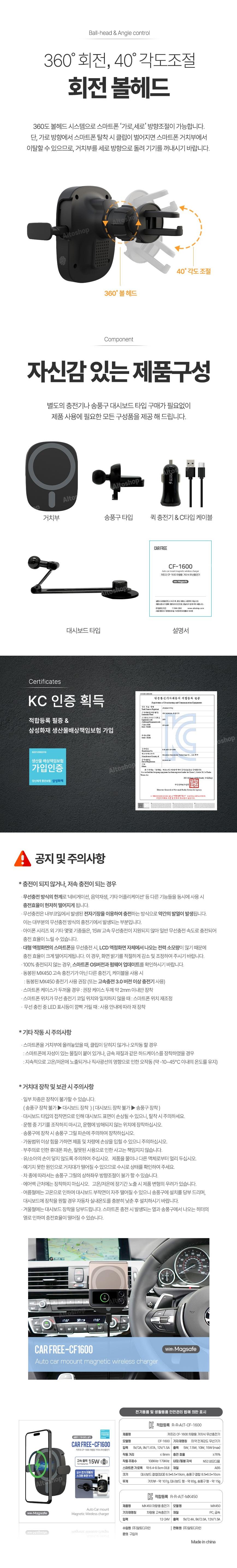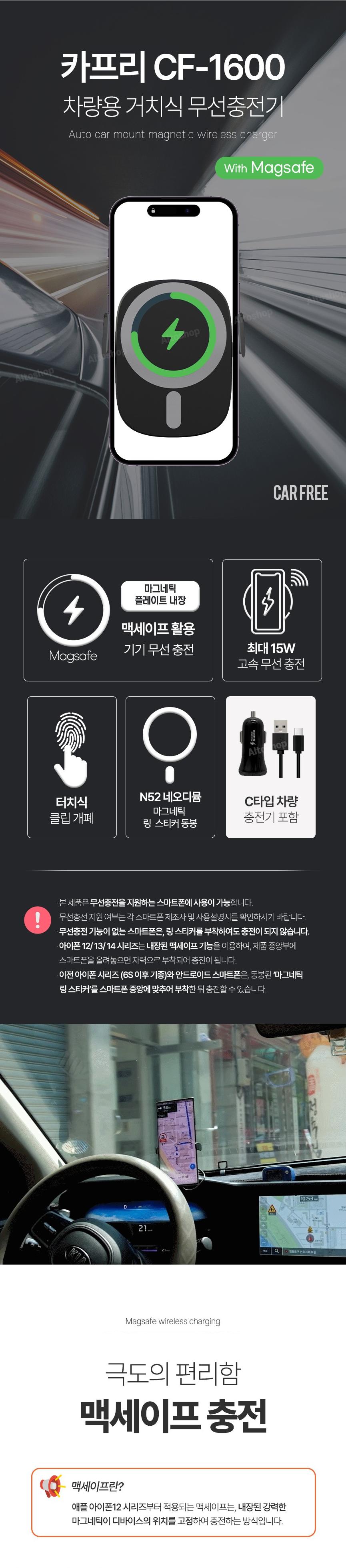 5) 카프리 CF-1600 멕세이프 차량용 거치식 무선충전기/블랙