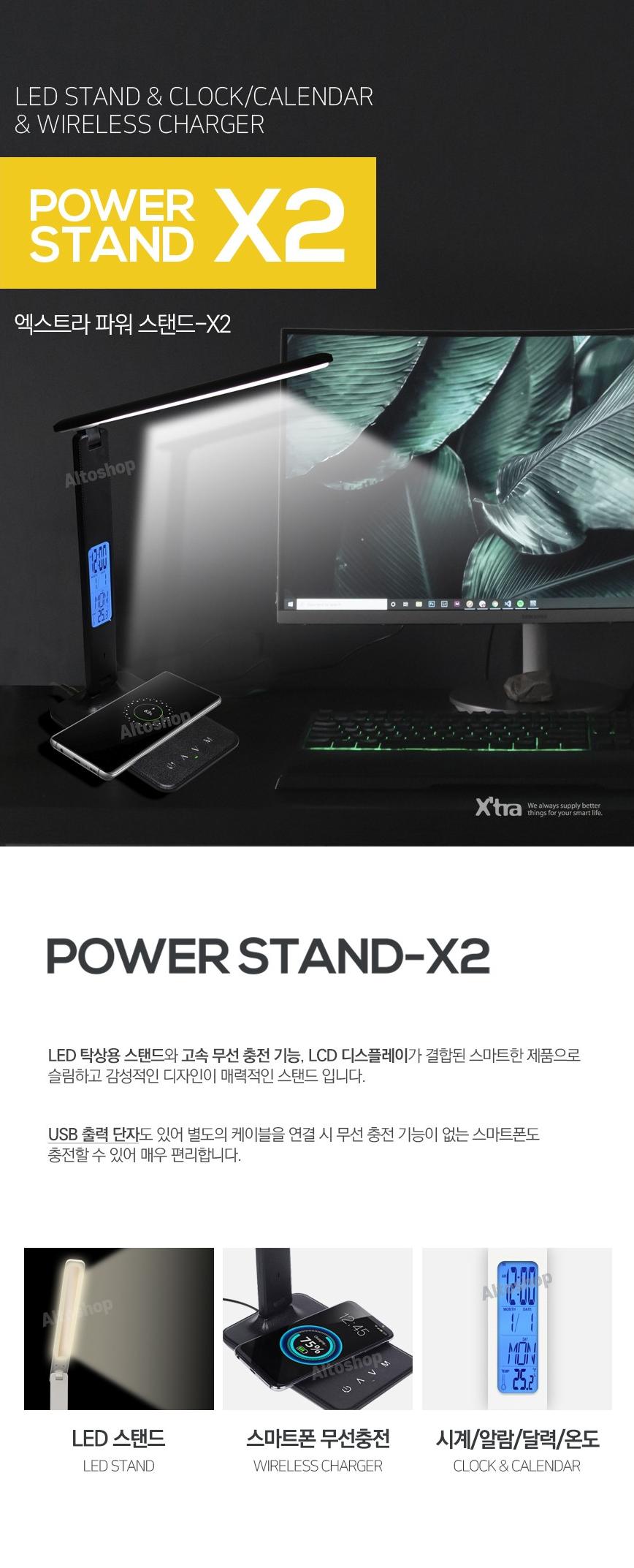 21) 엑스트라 파워스탠드-X2/스탠드&무선충전&탁상시계/블랙,화이트