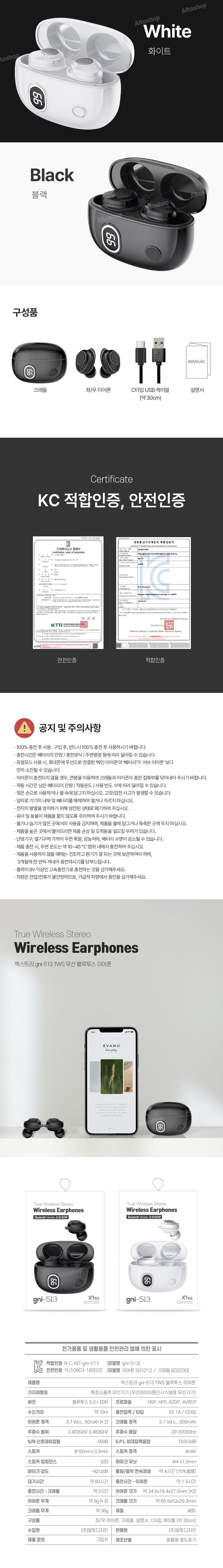 37) 엑스트라 gni-513 TWS 무선 블루투스 이어폰/블랙,화이트